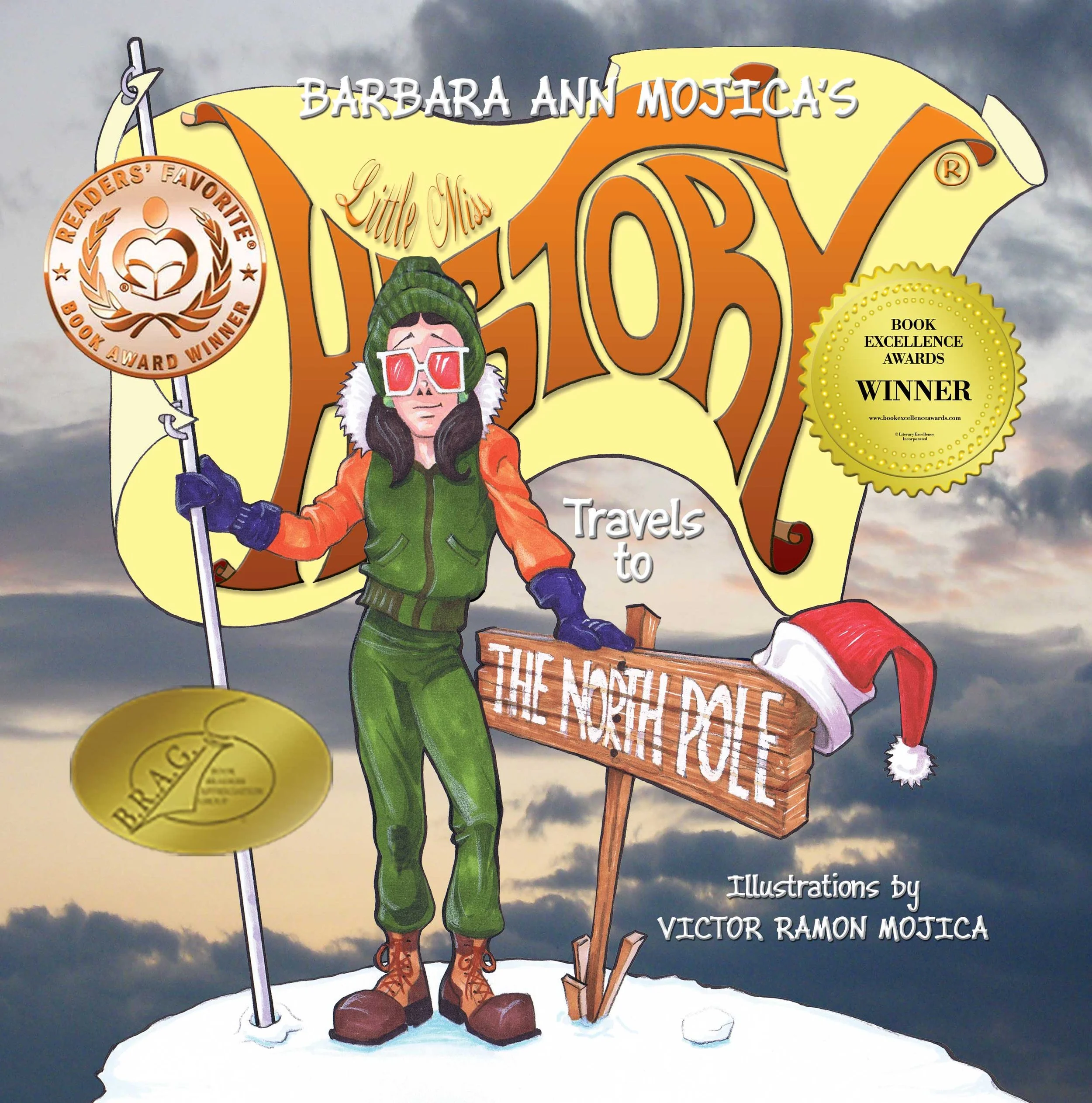 Little Miss HISTORY arrives at the North Pole in the award-winning children's book series, in a sled pulled by four huskies. This adventure will show you much that you probably don't know about the North Pole, like the fact that there's no land there, just icebergs floating on the ocean of the northernmost point on Earth. There are animals there, too, above and below the ice.